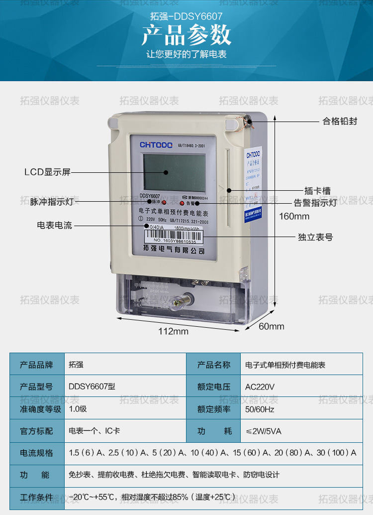 產(chǎn)品符合GB/T17215.321-2008《1級和2級靜止式交流有功電能表》和GB/T 18460.3-2001 《IC卡預付費售電系統(tǒng)第3部分:預付費電能表》的全部技術要求。