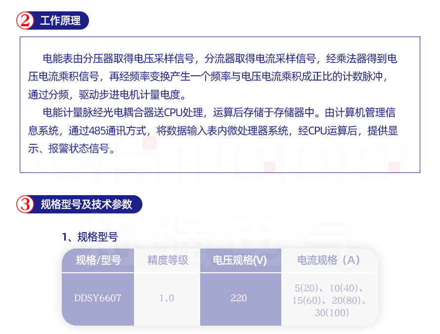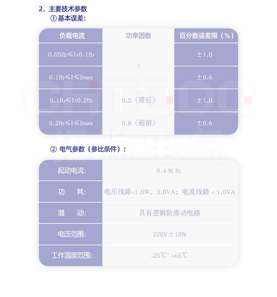 二、導軌式單相預付費電能表規格和主要技術參數